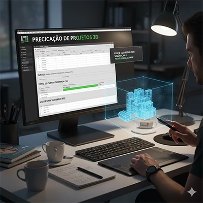 Tenha clareza na hora de cobrar pelos seus projetos 3D. Essa planilha calcula automaticamente seus custos e sugere um valor base de orçamento, ajudando você a precificar com segurança e profissionalismo.
